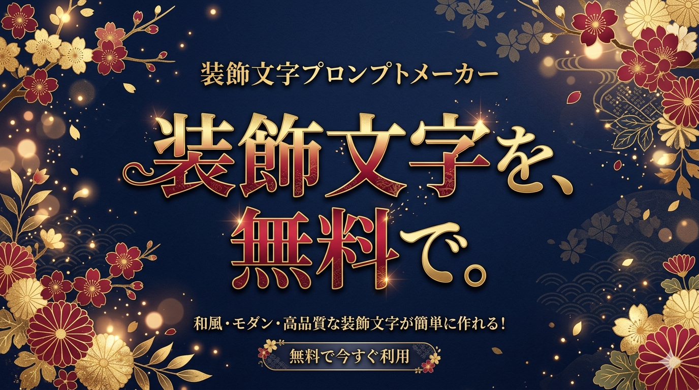 「感謝」「祝」「愛」——たった一文字を、美しい画像にしたいと思ったことはありませんか? ブログのアイキャッチ、Instagramの投稿、ギフトカード。文字が主役の画像があるだけで、ぐっと印象が変わります。でも、デザインソフトは難しい。プロンプトって... -